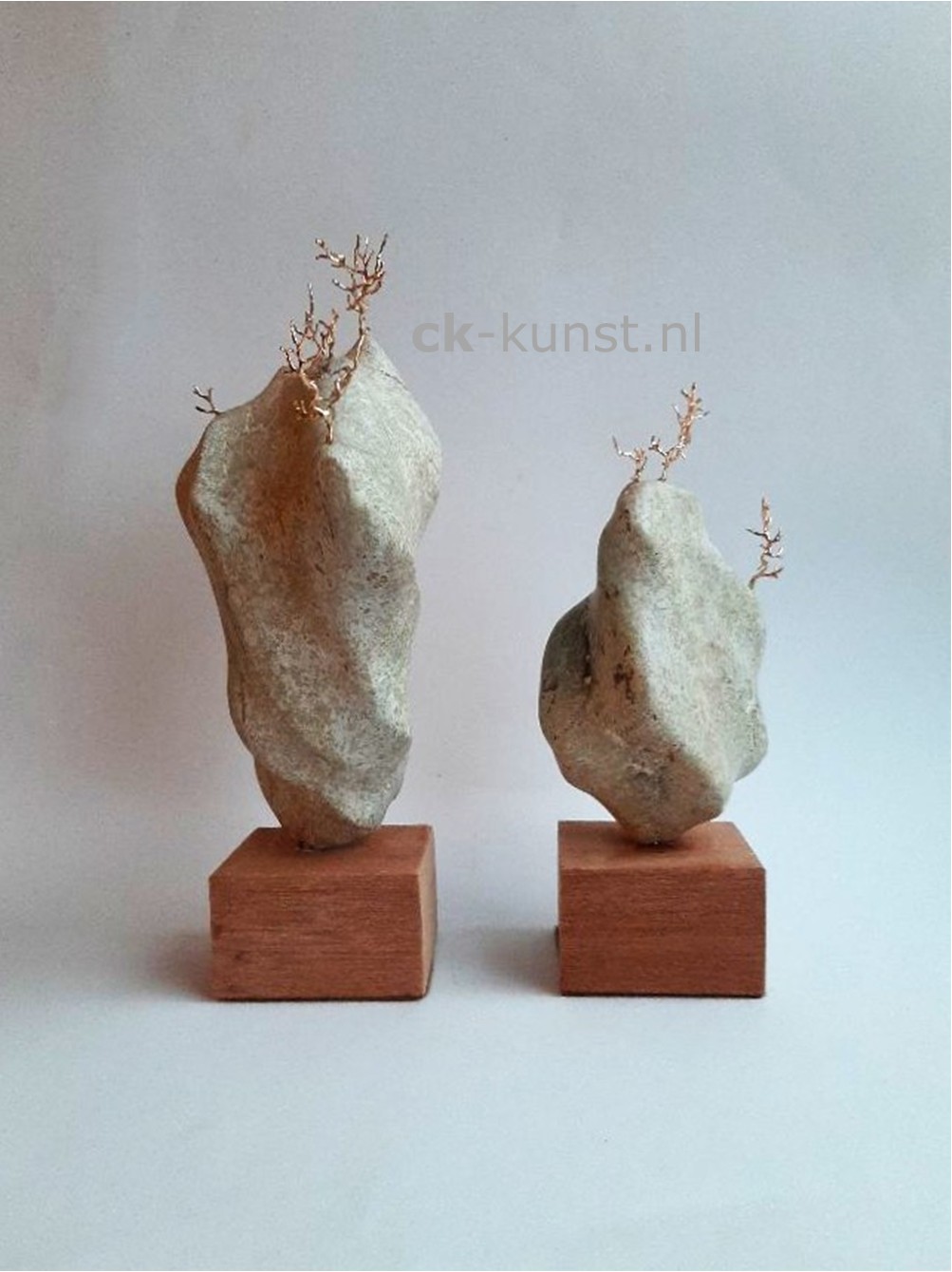 Beide op houten sokkel, prijs set € 175,-